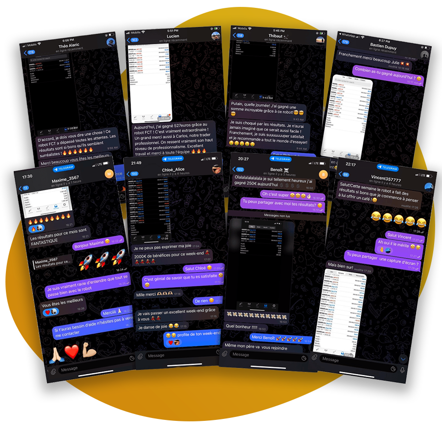 Oui, bien sûr ! Aucune connaissance technique n’est requise car notre système est 100 % automatique de votre côté ! Tout est entièrement géré par notre équipe. Cela convient donc parfaitement à ceux qui débutent ou n’ont pas le temps de trader. Nous avons également un Trader Pro Carlos qui supervise toutes les opérations.