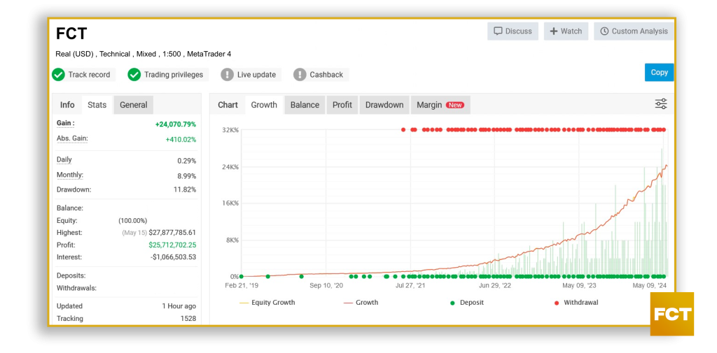 Nous nous rémunérons via un système gagnant-gagnant, géré par le broker, où nous récupérons 30 % des gains que vous générez grâce à nous de manière automatique.